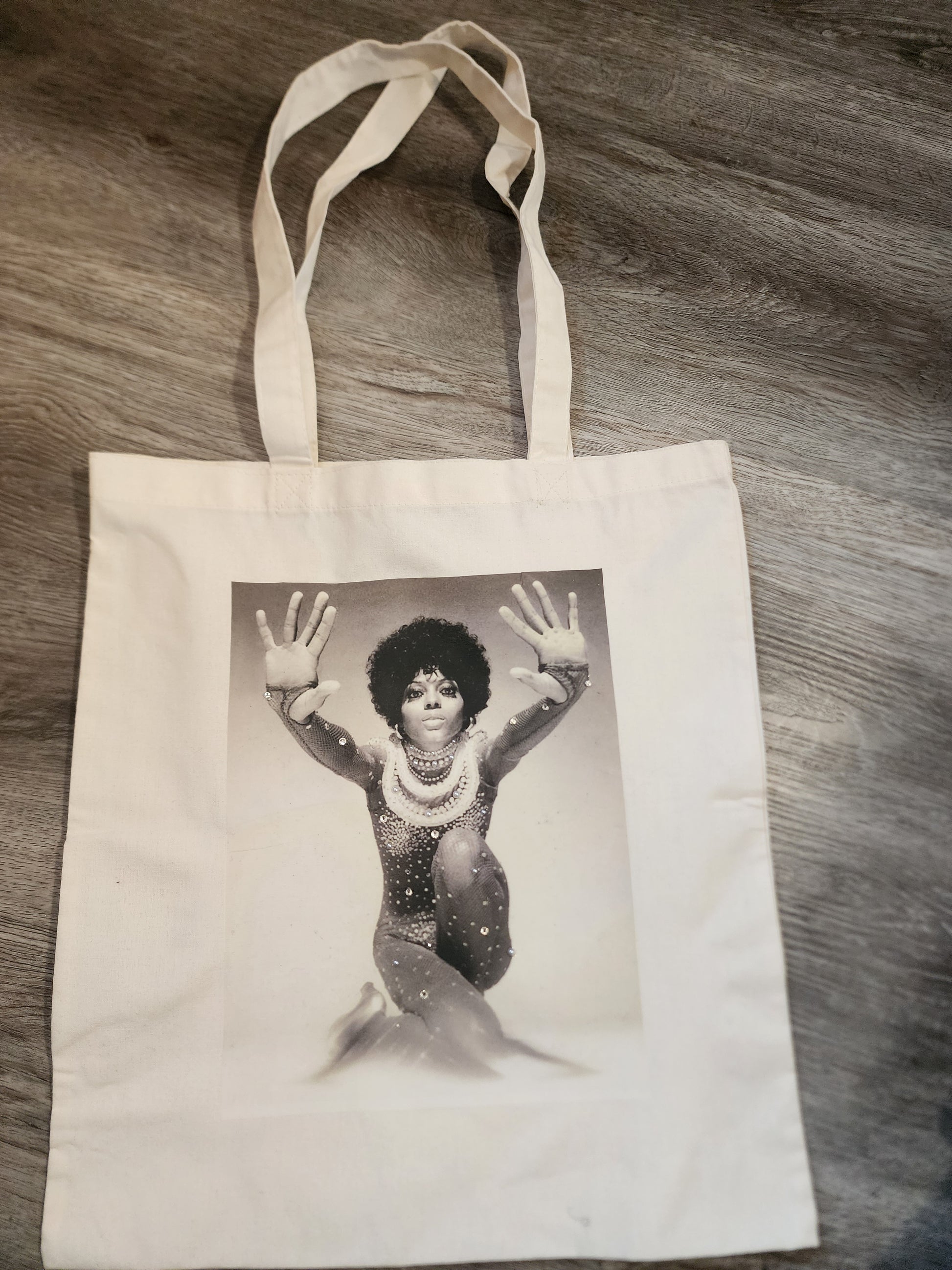 Celebrate a music icon with this classic Diana Ross cotton tote bag. This reusable shopper features a striking, high-contrast monochrome print of the "Queen of Motown" from her legendary 1974 portrait session.