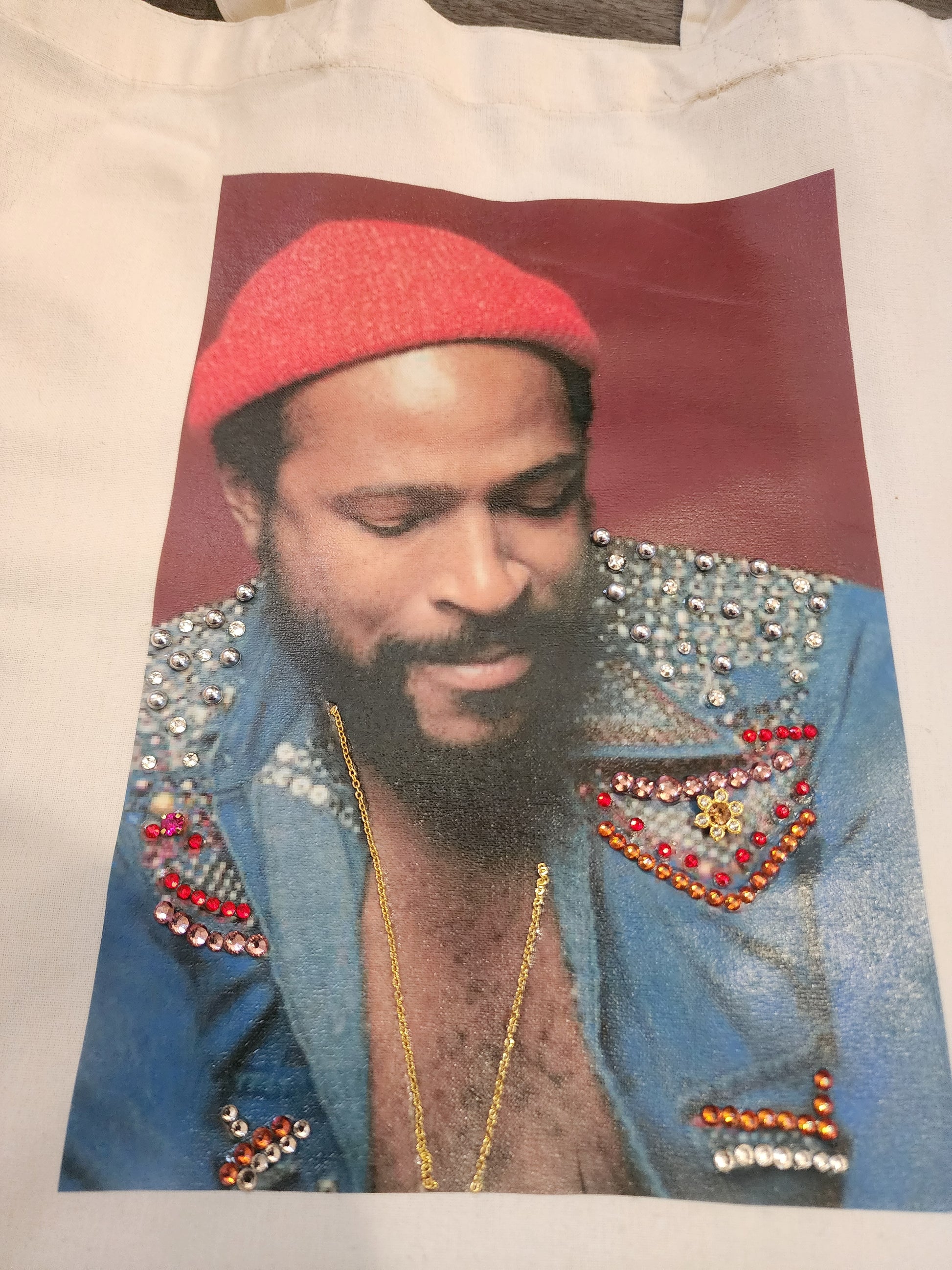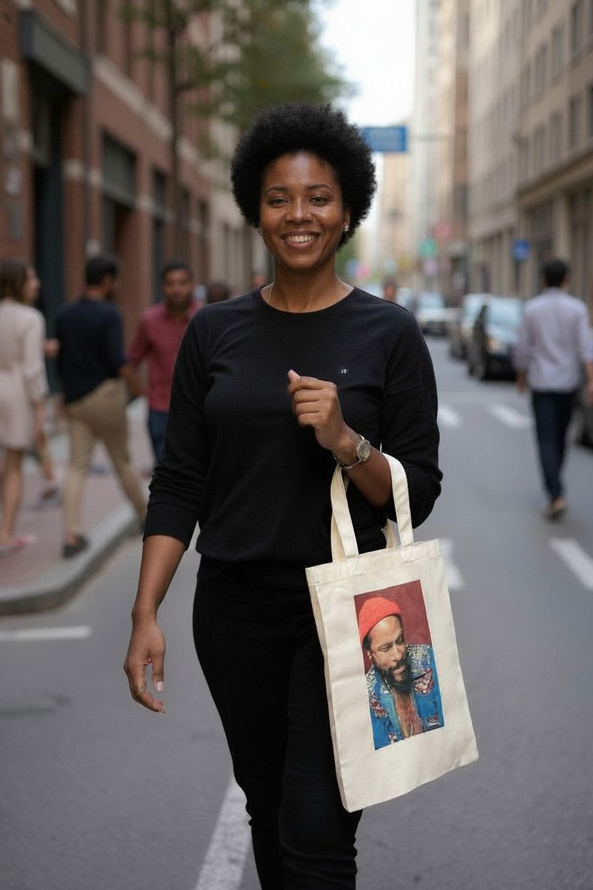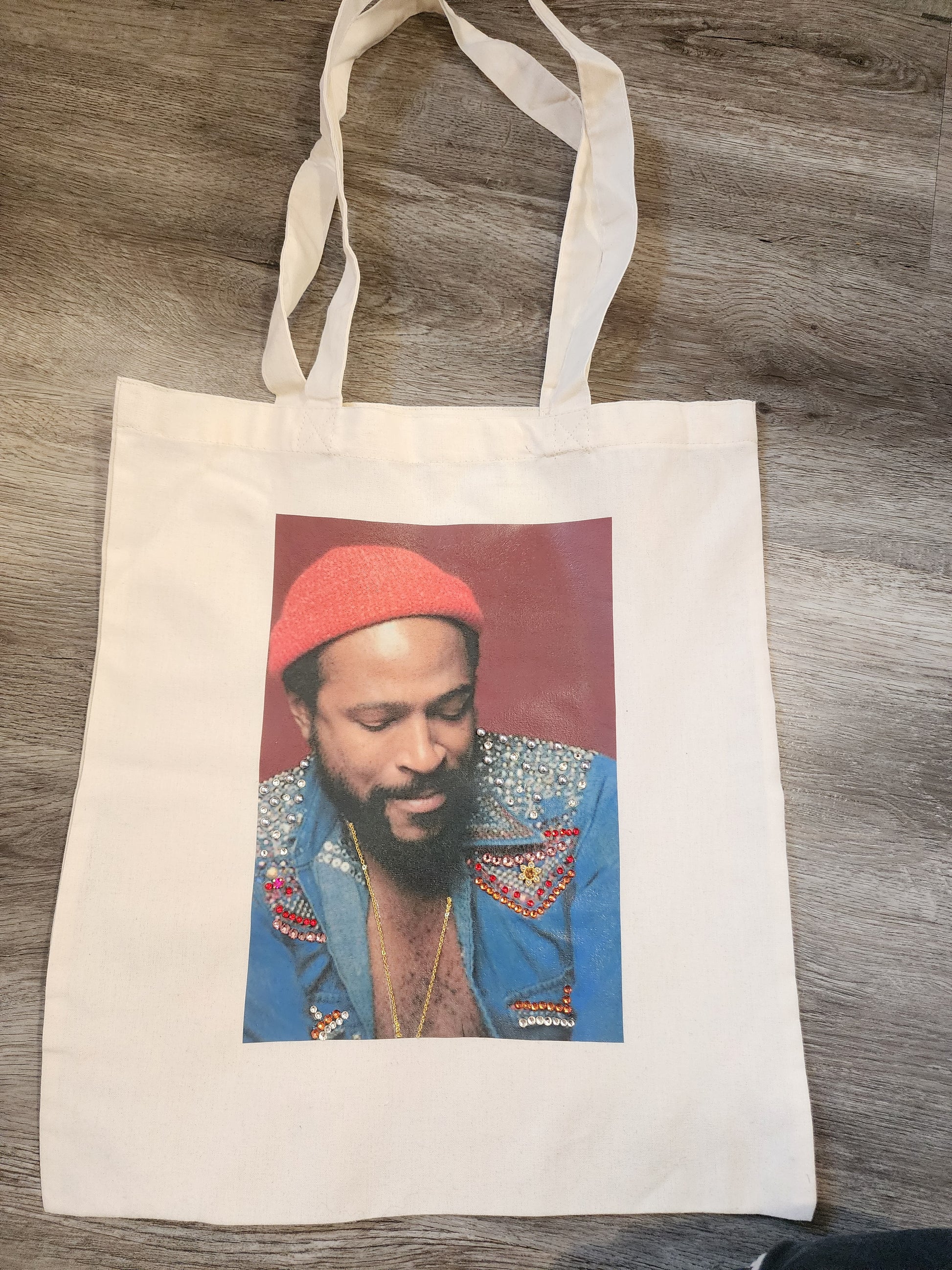 Enjoy this medium size custom tote, in natural Colour with the great, "Mr. Sexual Healing" himself...MARVIN GAYE!